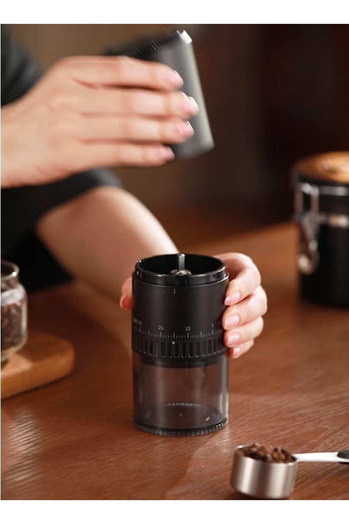 مطحنة قهوة كهربائية محمولة قابلة للشحن أسود USB C بقوة 30 واط و سعة 120 مل